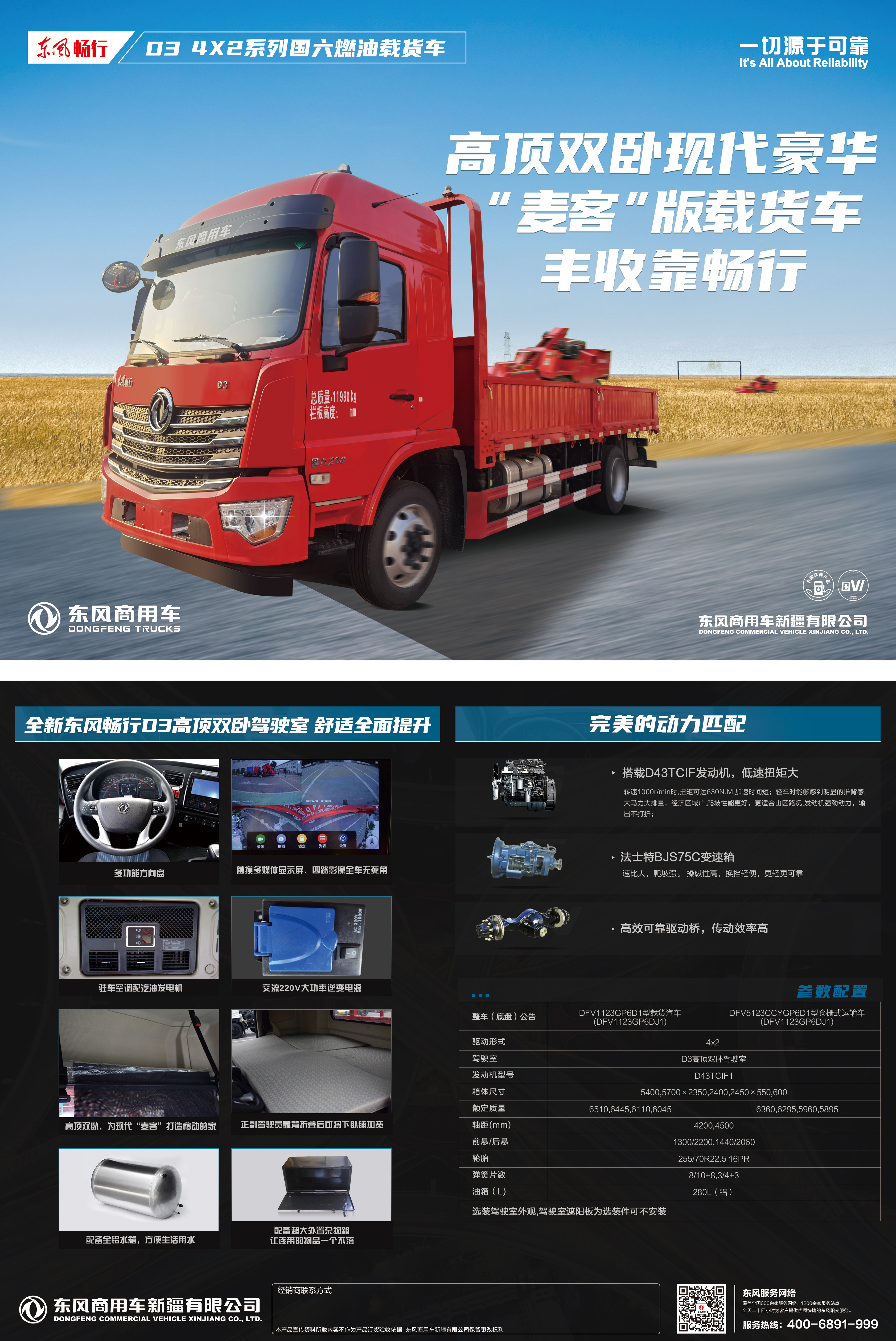 搭載D43TCIF發(fā)動機(jī),低速扭矩大,轉(zhuǎn)速1000r/min時,扭矩可達(dá)630N.M,加速